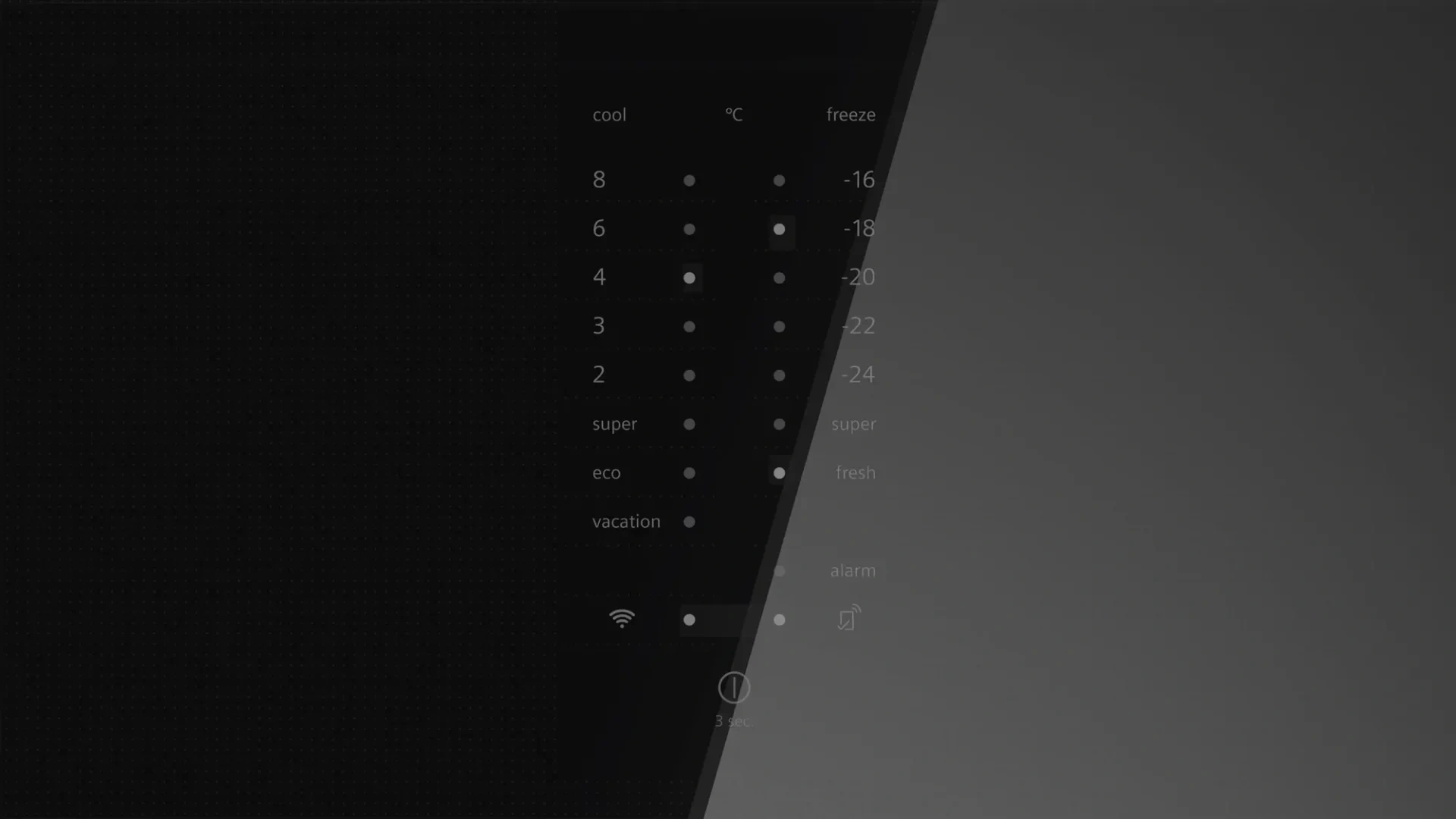Kullanma şekli : Derin dondurucu sıcaklık göstergesi, Dondurucu uyarı fonksiyonu, Kapı açık kaldığında uyarı sinyali, Soğutucu sıcaklık göstergesi, Süper dondurma fonksiyonu, Süper soğutma fonksiyonu, Uyarı sinyali arızası