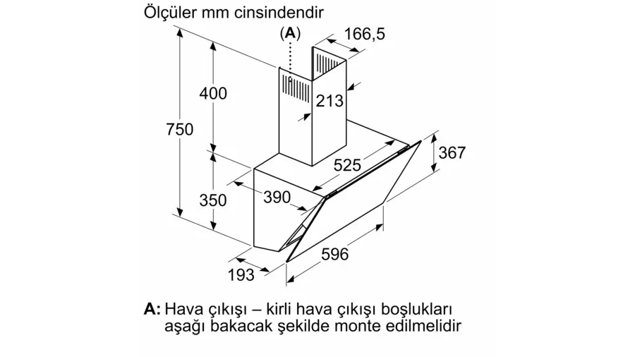 hava çıkışlılarda ,yoğun kademede çalışırken hava çekme : 700 m³/h